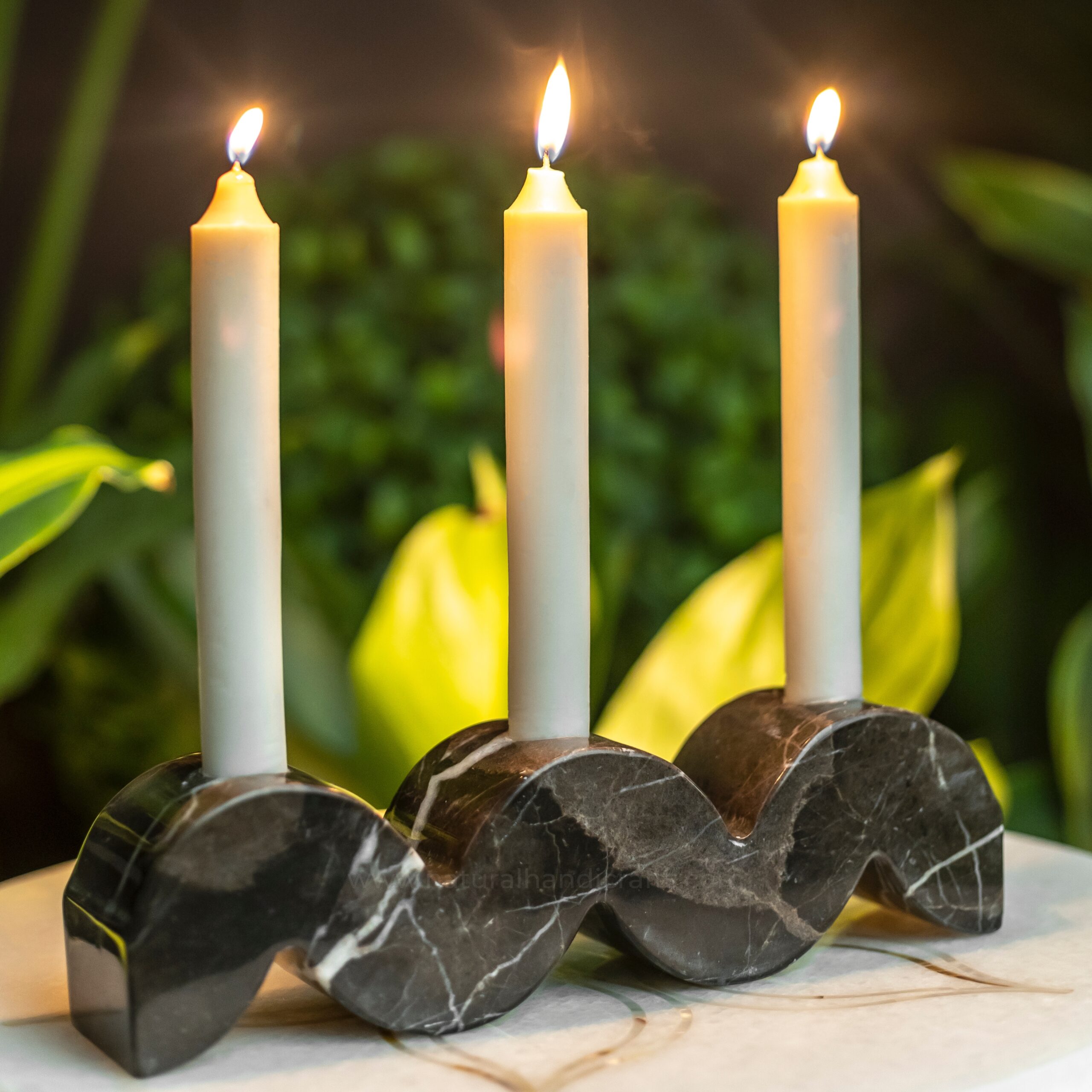 Enhance your space with the timeless sophistication of the Wave Elegance Black Marble Candle Holder. Handcrafted from luxurious black marble with natural white veining, this piece exudes elegance and modern style. The unique wave-shaped design adds a sculptural element, making it a perfect centerpiece for your dining table, mantel, or any surface that calls for a touch of class. Whether used to hold candles for a romantic dinner or simply as a decorative accent, this marble holder brings both form and function to your decor. Its solid marble construction ensures durability, while the distinct pattern of each piece guarantees that your candle holder is one-of-a-kind. Elevate your home with the understated luxury of marble and the artistic flair of this contemporary design.